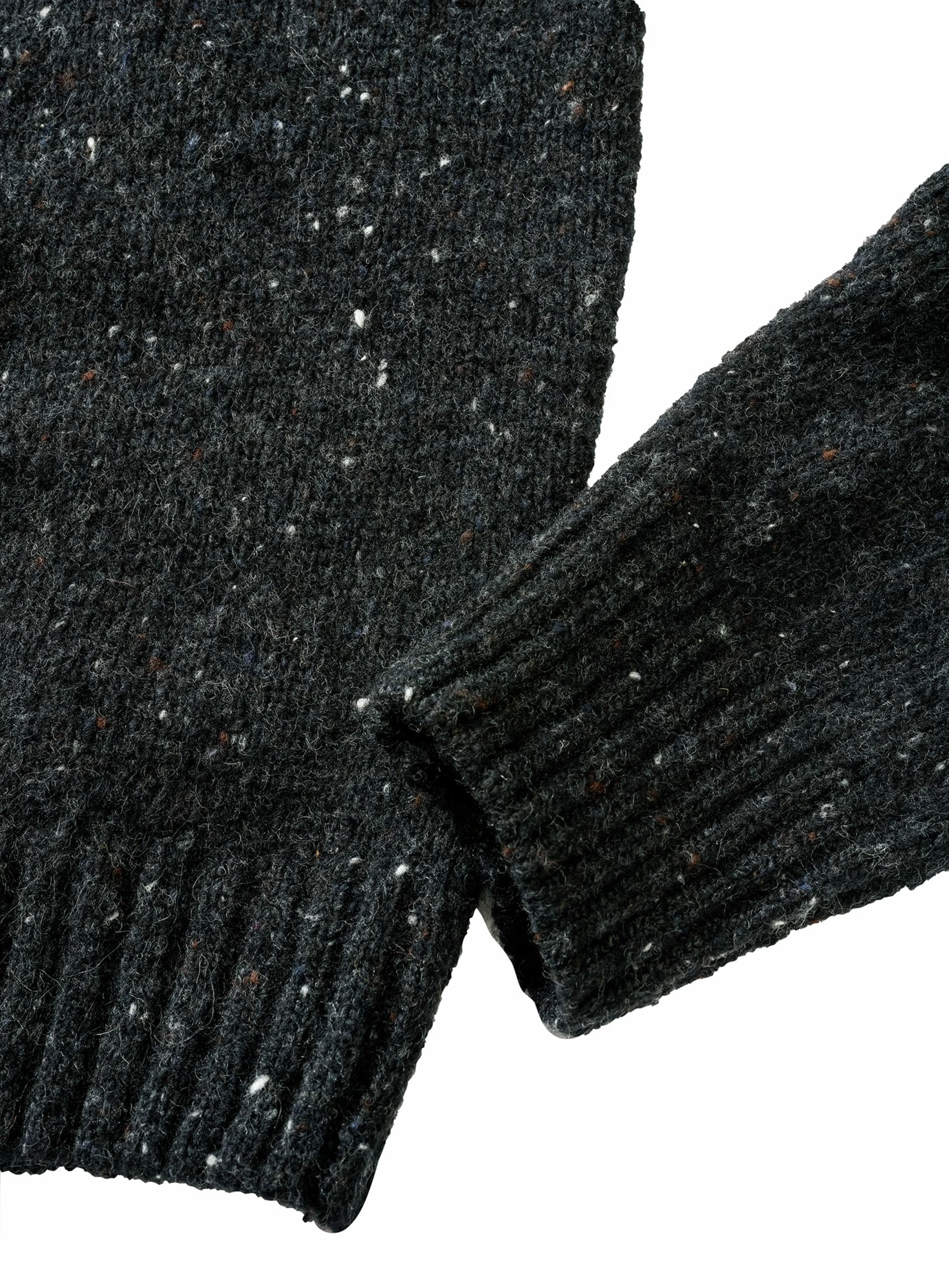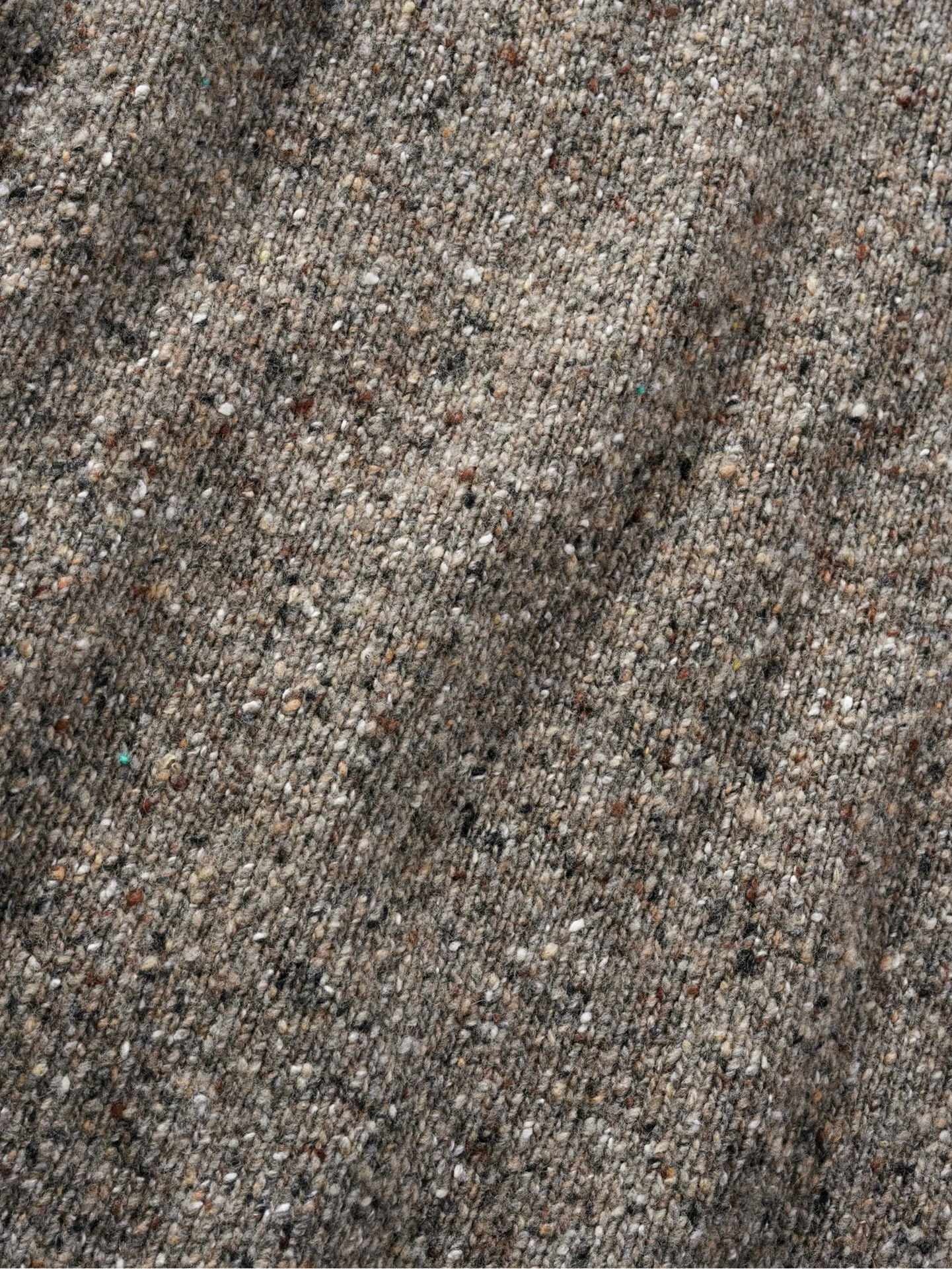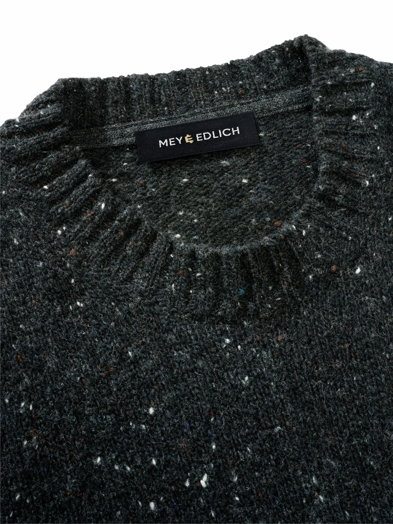 Wie er einst von Hand gestrickt wurde. Tweedgarnen haftet immer etwas Handwerkliches an. Weil sie nicht perfekt sind und in unregelmäßigen Abständen diese charakteristischen bunten Verdickungen haben. Heute wird das bewusst mitdesignt – so wie für diesen Pullover.