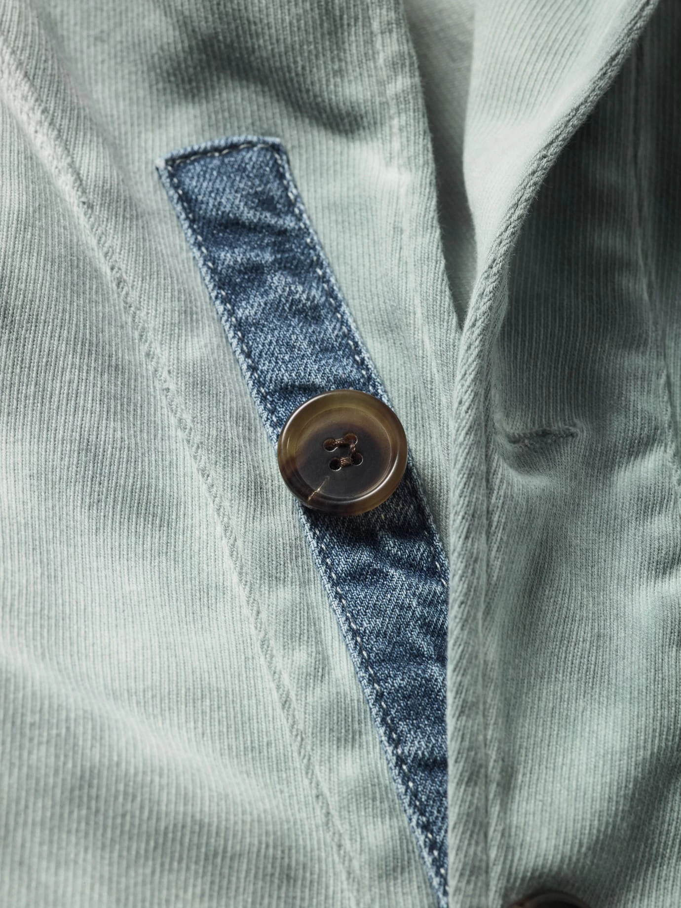 Scharfer Grenzgänger. Weder Jeansjacke noch Cardigan. Eine Jacke mit Alleinstellungsmerkmal. Barb’One wäscht sie so lange, bis sie verdammt weich ist und verdammt eingelebt aussieht. Typisch für die italienischen Designer: die abgesetzten Details, wie die Jeanstaschen, die Jeansknopfleiste oder aber die fetten Knöpfe in Holzoptik. Dazu passt ein schlichtes T-Shirt oder Longsleeve, bei der Hose können Sie gern mehr PS drauf geben.