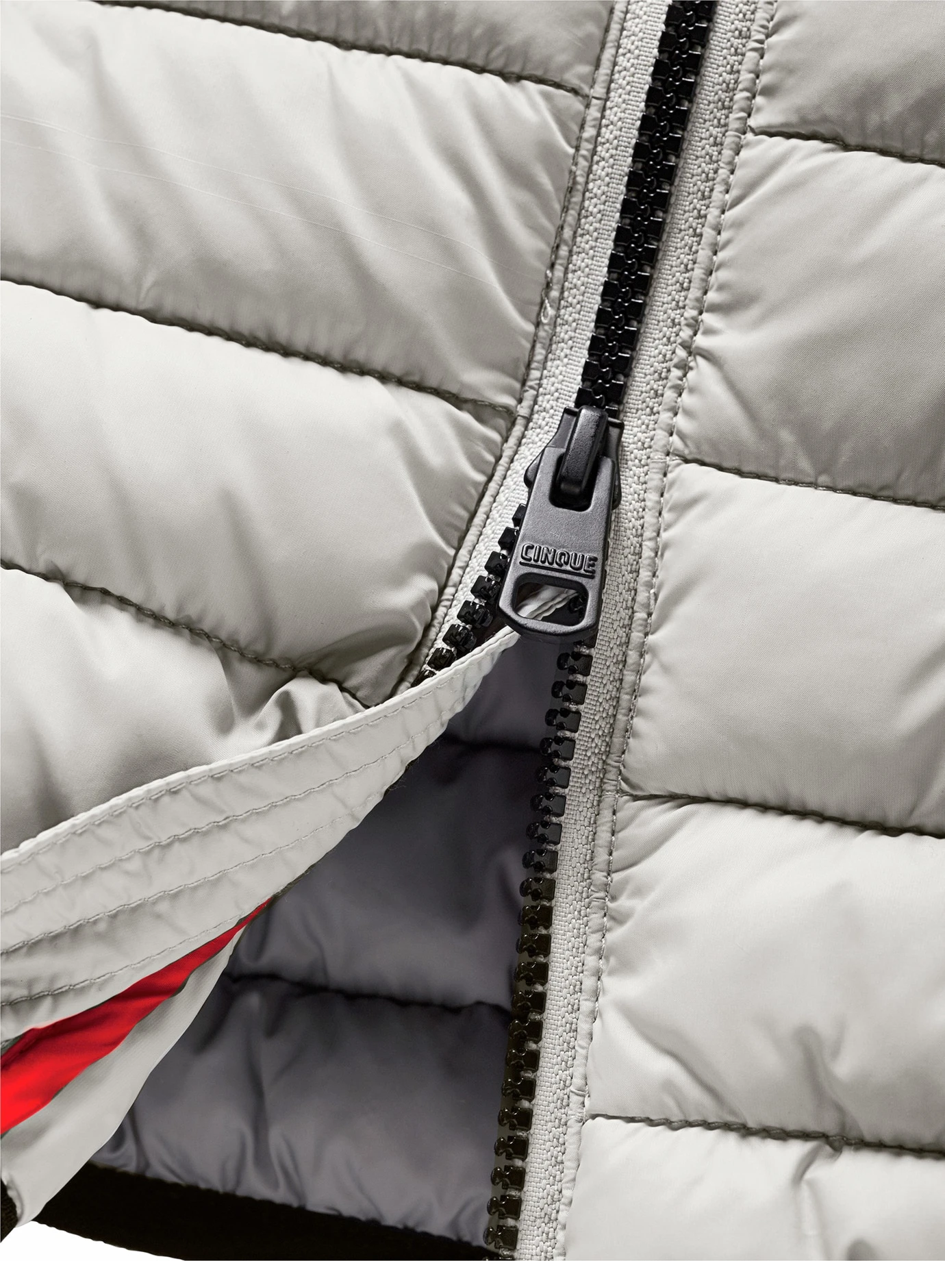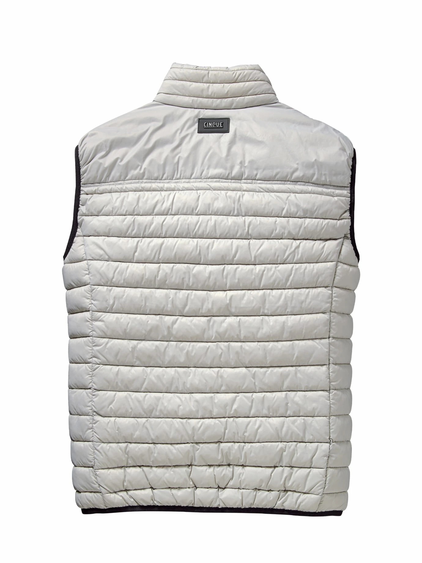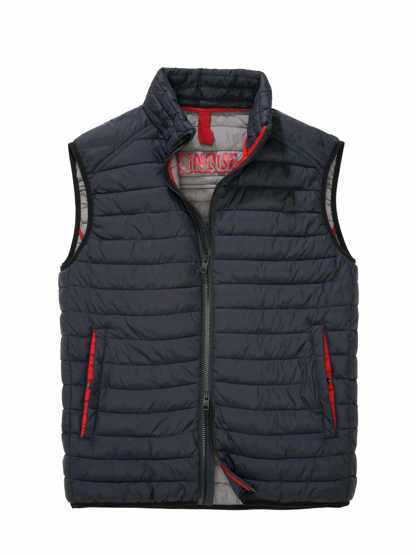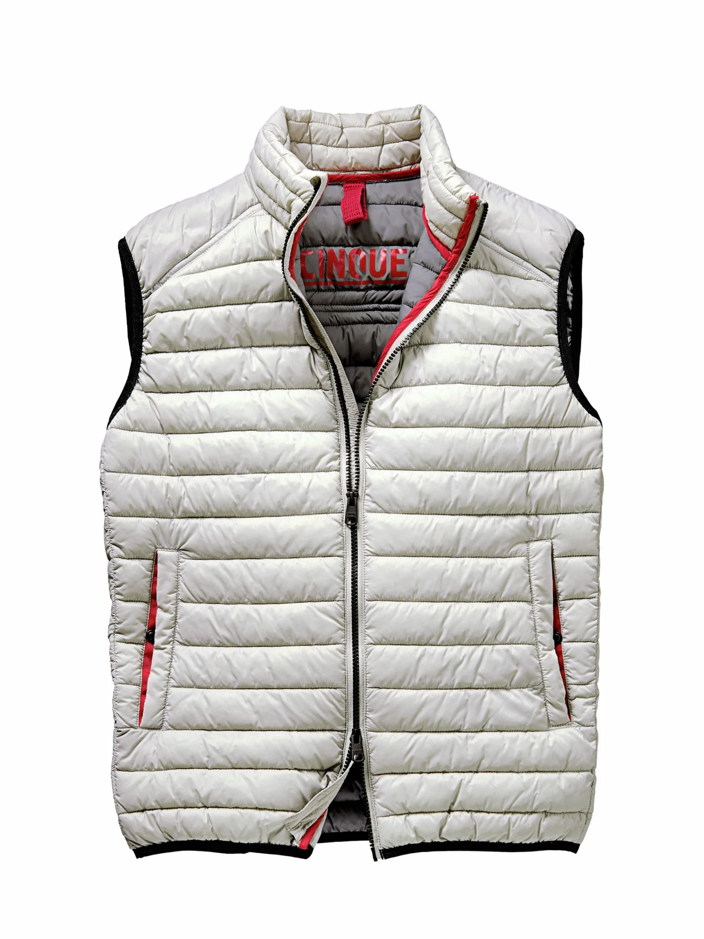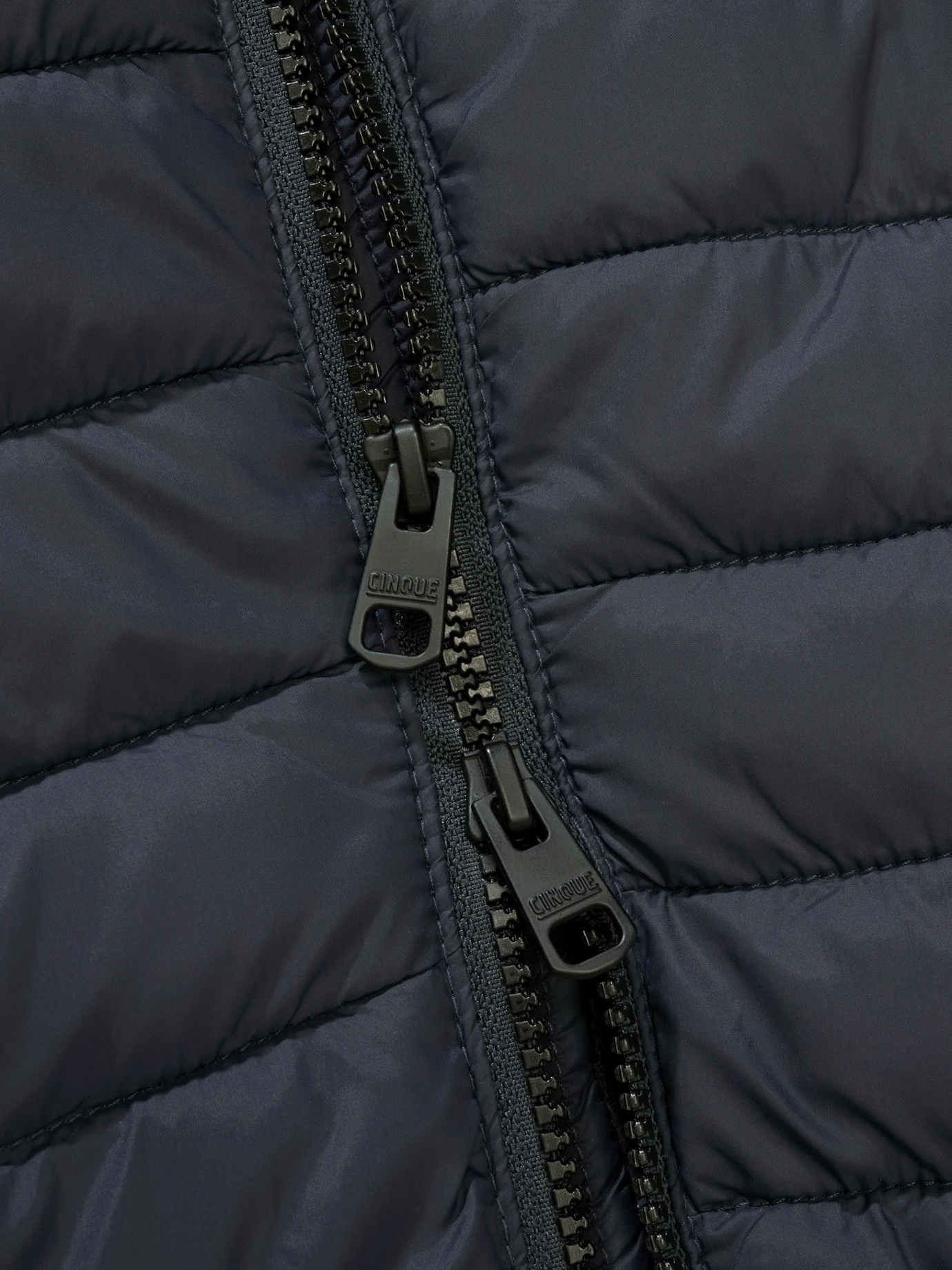 Ungeahnt leicht. Ungeahnt kombinationsstark. Das Kammernsystem dieser Weste befüllt CINQUE mit der zukunftsweisenden DuPontTM-Sorona®-Faser. Hierzu wird Mais aufbereitet, bis der Rohstoff wärmt wie echte Daune, aber das Gewissen schont. Die Weste ist atmungsaktiv und auf minimales Gewicht getrimmt: Mit ihren 290 Gramm ist sie zudem flach genug, um selbst unterm Sakko intelligenter Wärmespeicher zu sein. Dank wasserabweisendem Oberstoff funktioniert sie ganzjährig, im Herbst überm Pullover, im Winter unterm Mantel und ab dem Frühjahr überm Shirt.