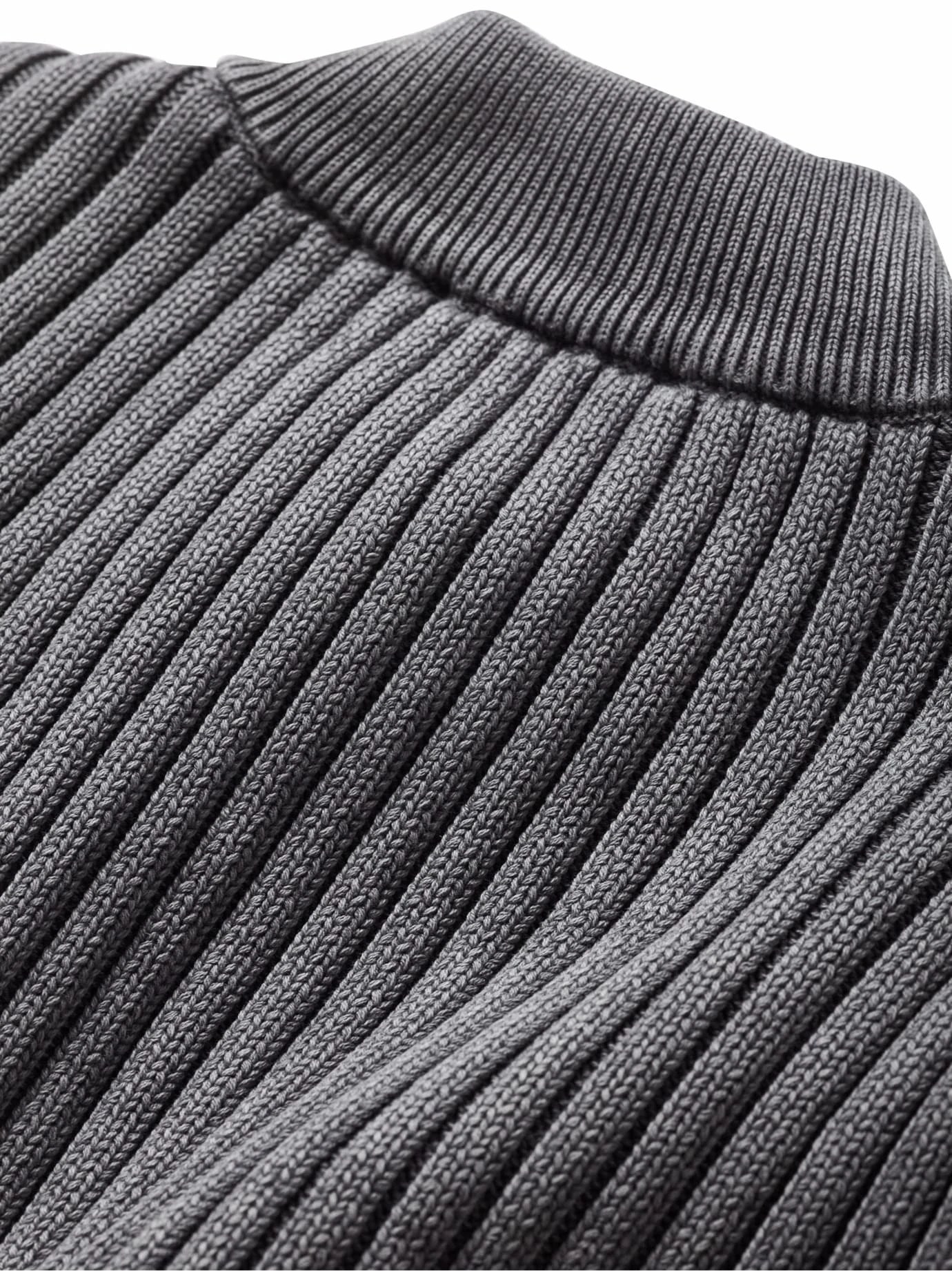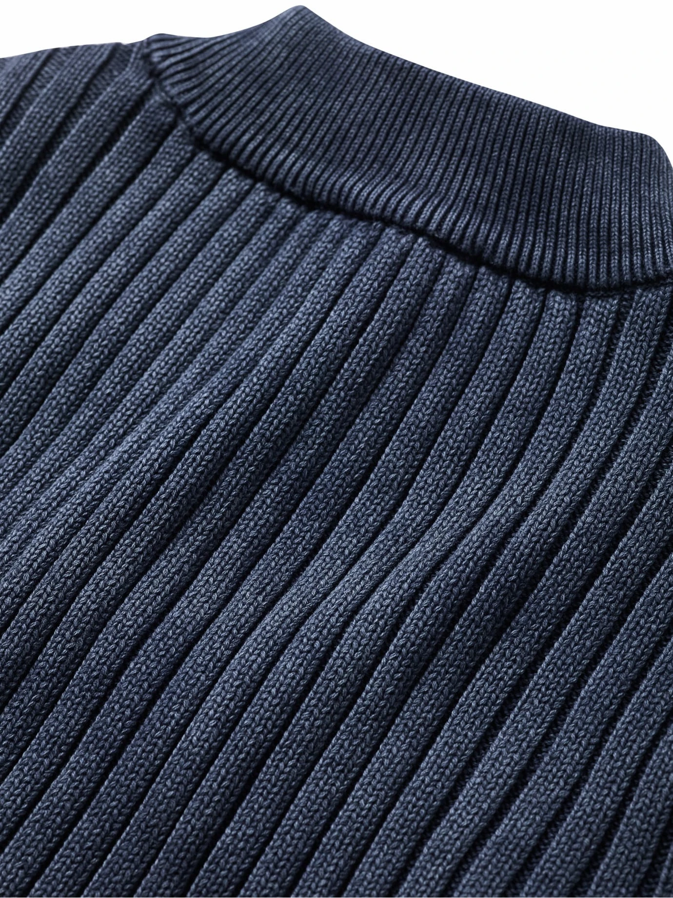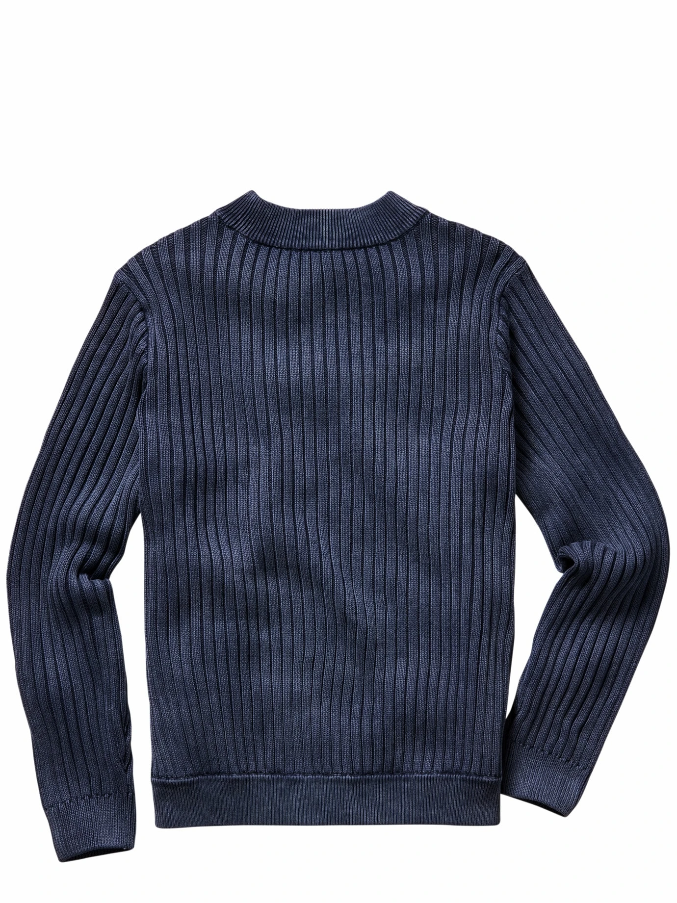 Verarbeitung: Rundhalsausschnitt. Breite Bünde im feinen Rippstrick. Regular Fit.